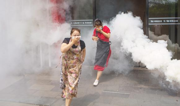 刺鼻的浓烟从大楼飘出,刺耳的警报声也持续拉响,“火情”发生后,工作人员立即启动应急疏散预案,各小组各司其职,针对全体员工火灾疏散进行演练。在整个过程中,现场火势迅速被扑灭,人员全部安全撤离,高效完成实战演练任务。