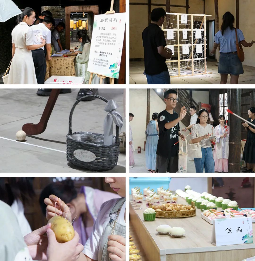 男女组合一同参与游园活动,在游园中感受浪漫的氛围,通过射箭、猜灯谜、弈棋 投壶、穿针乞巧、蹴鞠、捶丸等宋韵游戏赢取银票换购美食与烧烤,让大家在轻松愉悦的氛围中彼此了解