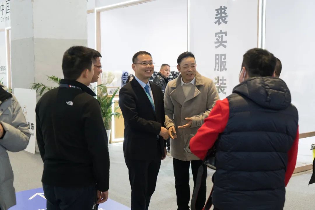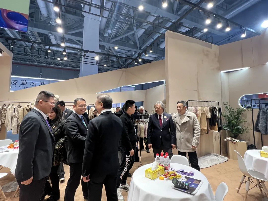 3.6日开展首日午,崇福镇镇长陈凌锋、副镇长钱伟国以及经济发展服务中心主任沈杰,桐乡市崇德投资发展集团有限公司副总经理王伟江等领导嘉宾莅临午夜黄色网站集团展位参观指导。皮草协会的秘书长姚夏其与中国服装协会顾问周一奇也到场支持,共同见证了午夜黄色网站的创新成果和未来发展规划。