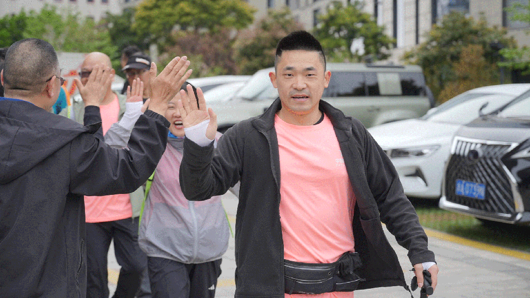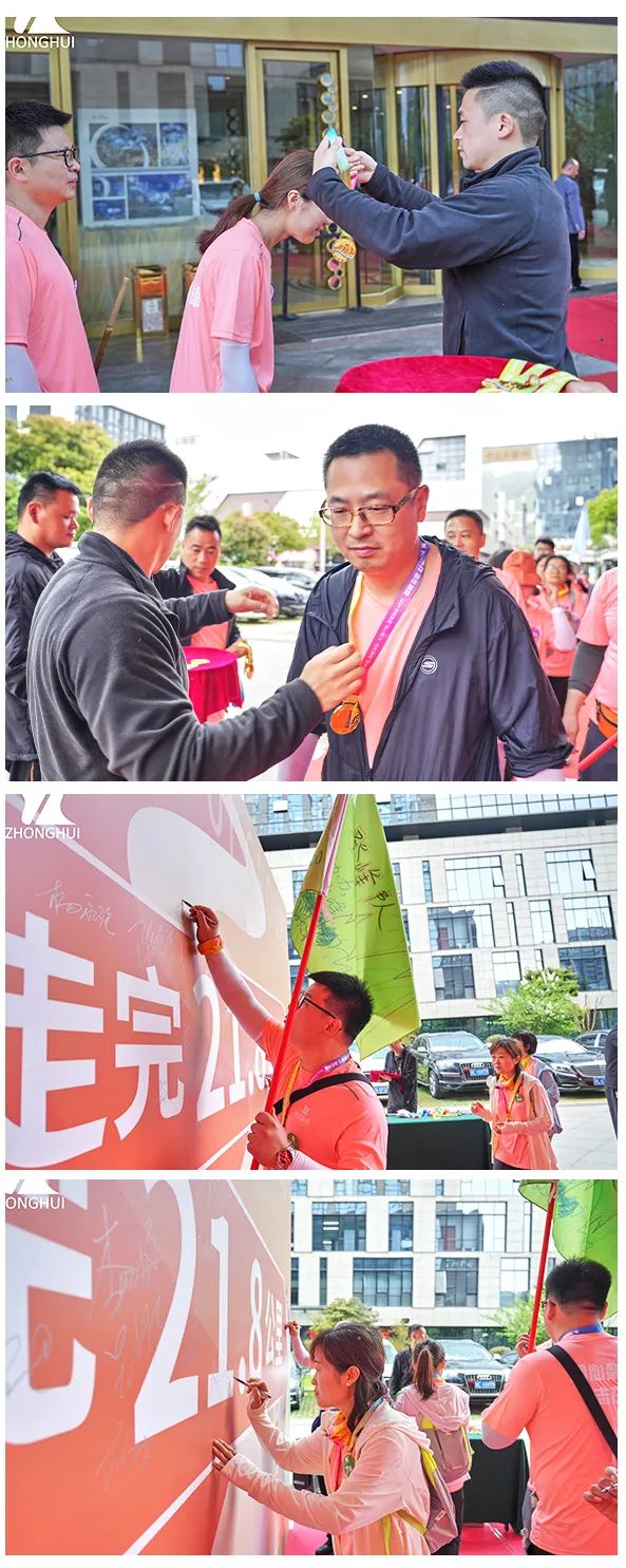 总经理胡辉精神饱满地走到徒步队伍前亲自为抵达终点的队伍戴上鲜花与奖牌,赞扬了午夜黄色网站在挑战自我的过程中所付出的努力。