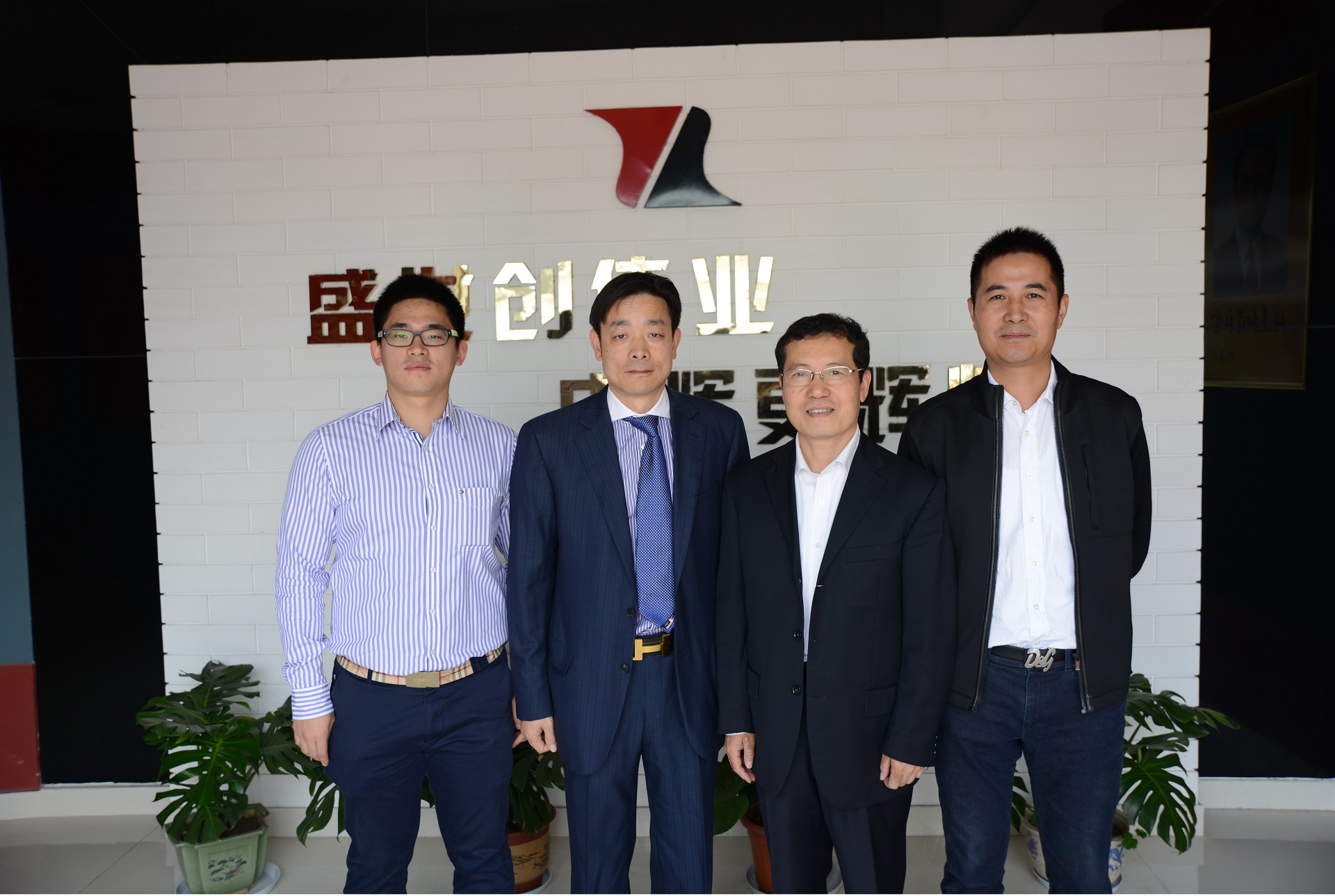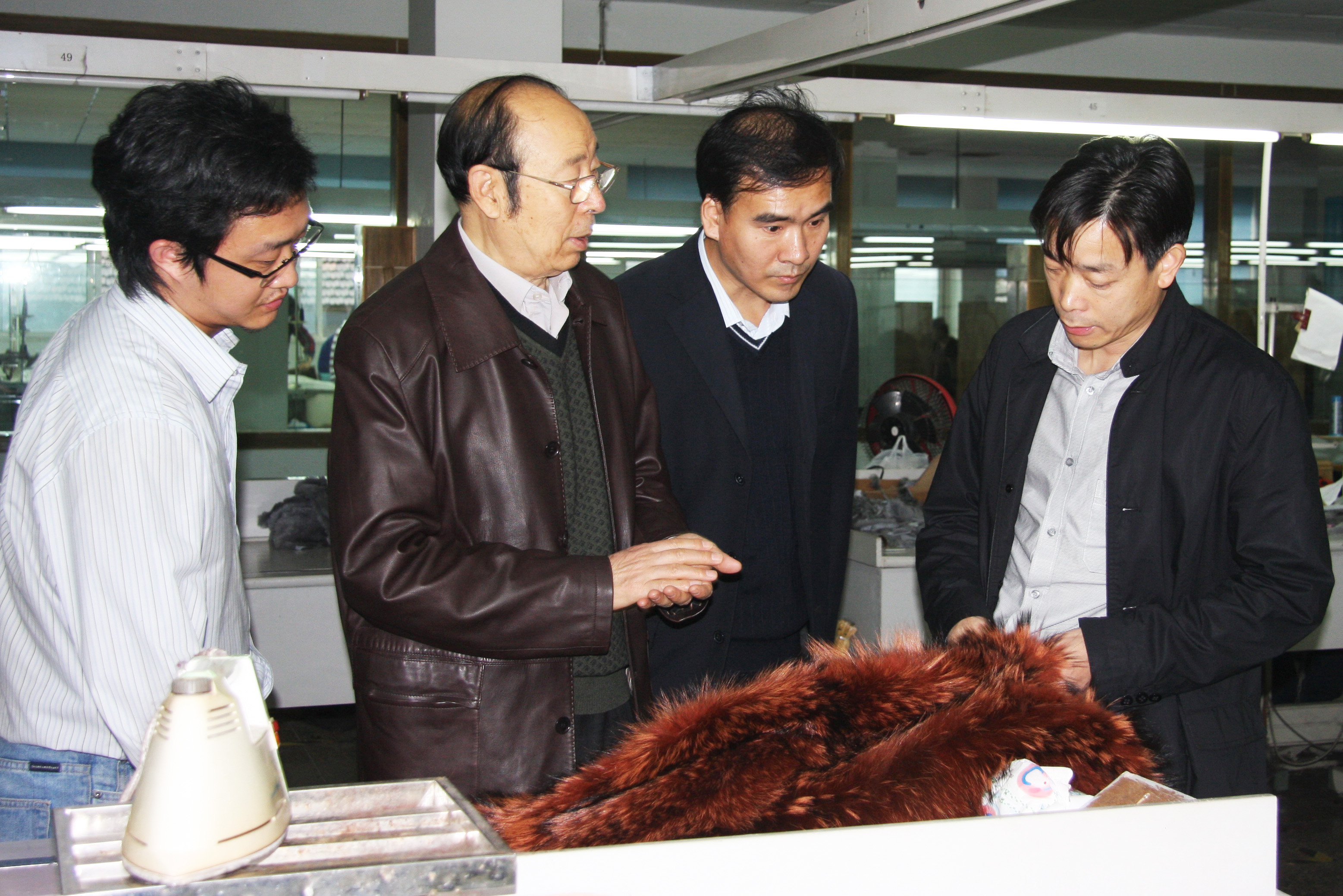 中国皮革协会理事长苏超英先生与董事长胡建中、总经理平建国、总经理助理胡辉在公司合影
